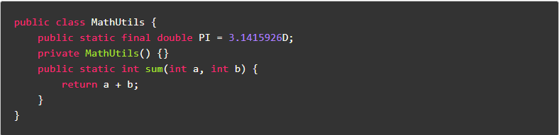 工具类是一堆静态字段和函数的集合,不应该被实例化。但是, Java 为每个没有明确定义构造函数的类添加了一个隐式公有构造函数。所以,为了避免 java "小白"使用有误,应该显式定义私有构造函数来屏蔽这个隐式公有构造函数。