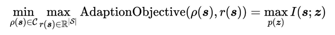 为 的优化目标,即策略在下游任务上的 adaption 过程,其中第一项以策略在下游任务 为优化目标,第二项为 与初始化策略分布 分布之间的 KL 散度,KL 散度越小,两者之间差异性越小,策略能够越容易的 general 到下游任务(作者称此项为 information cost)。可以看到 与 的唯一差别是: 为 下的最优 state 分布,仅仅以策略最优性作为优化目标,而 的优化过程需要同时考虑策略最优性以及 adaption 过程的 information cost。