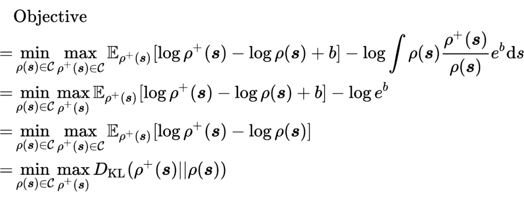 公式中 代表初始化数据分布(即 pre-train 后得到的分布,初始化是相对于下游任务来说), 为在下游任务上(对于奖励函数 )进行 adaption(finetune)得到的 state 分布; 下游任务 上的最优 state 分布。