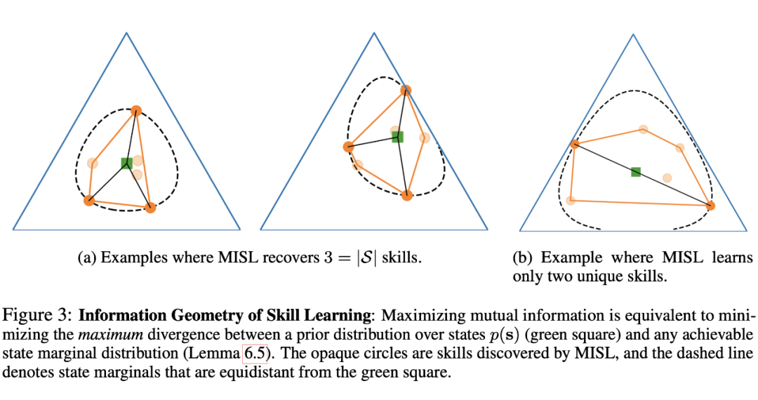 存在于 维空间中,共有 个自由度(因为和为1的约束)。当不断习得 skill 时,需满足与 的距离为 ,其中 作为变量提供了一个额外的自由度。因此,最多添加 个约束, 便可以完全确定,继续增加额外的 skill 会让该问题变成 ill-defined。因此,最多同时习得 个 skill。