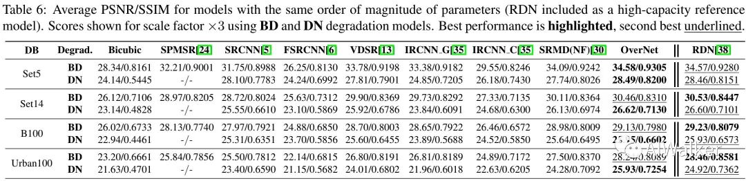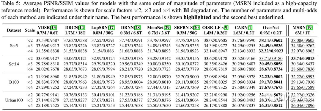 直接上实验结果了,下图对比了OverNet与MetaSR的效果对比。可以看到该文方法具有更优的性能;同时所提OSM模块比MetaSR模块性能更优。