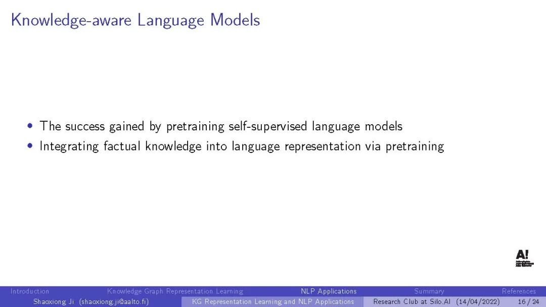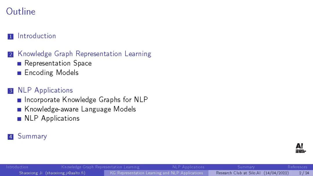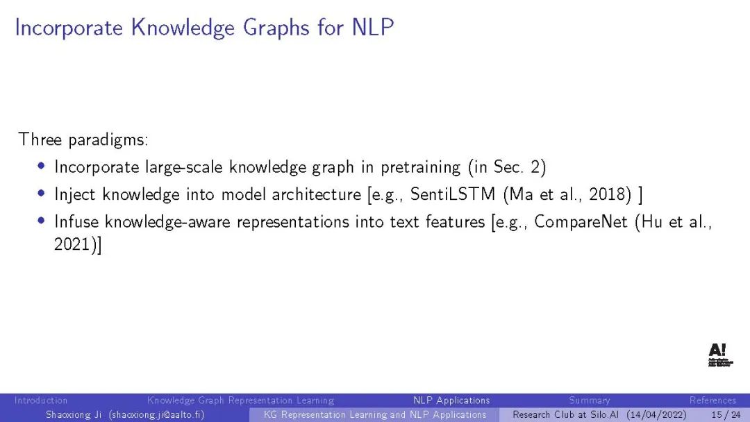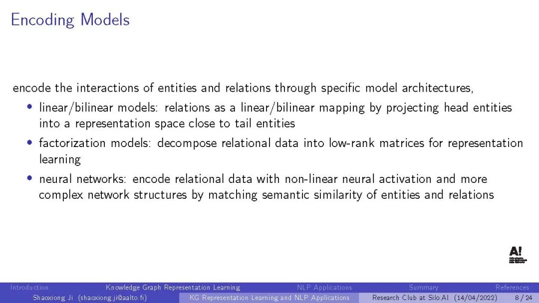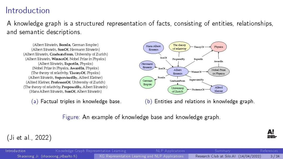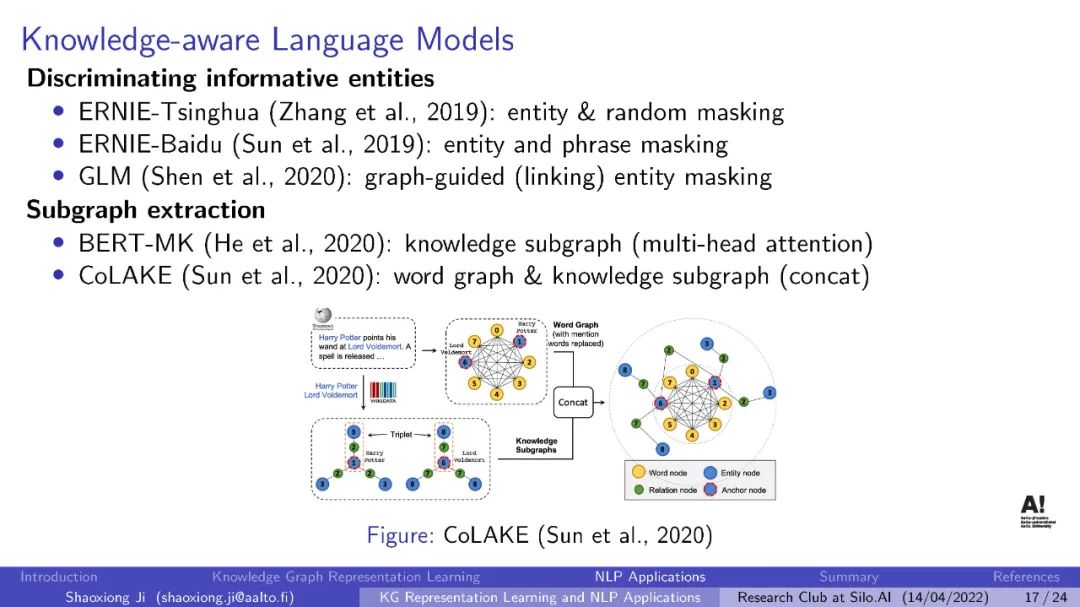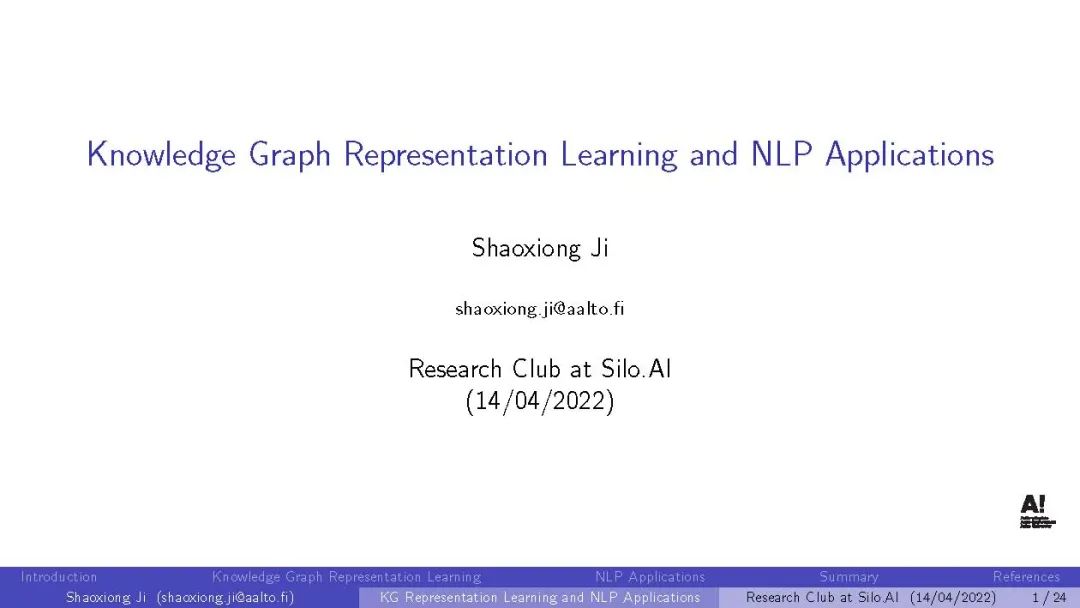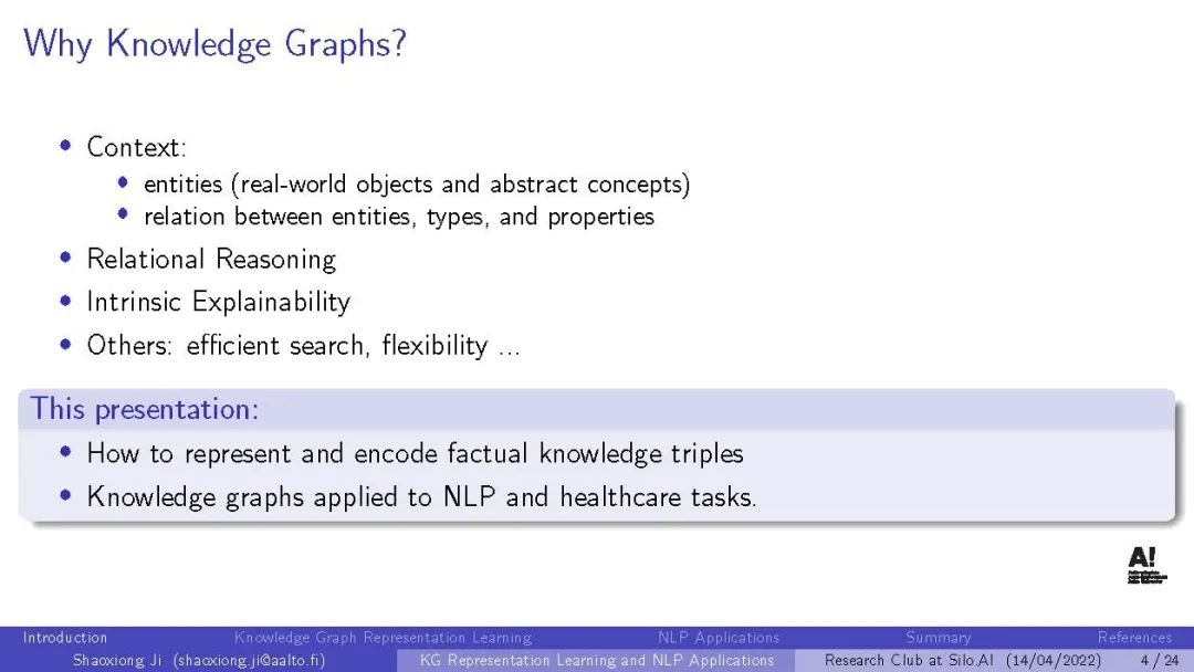 来自阿尔托大学计算机科学系博士研究生Shaoxiong Ji的《知识图谱表示学习与NLP应用》。