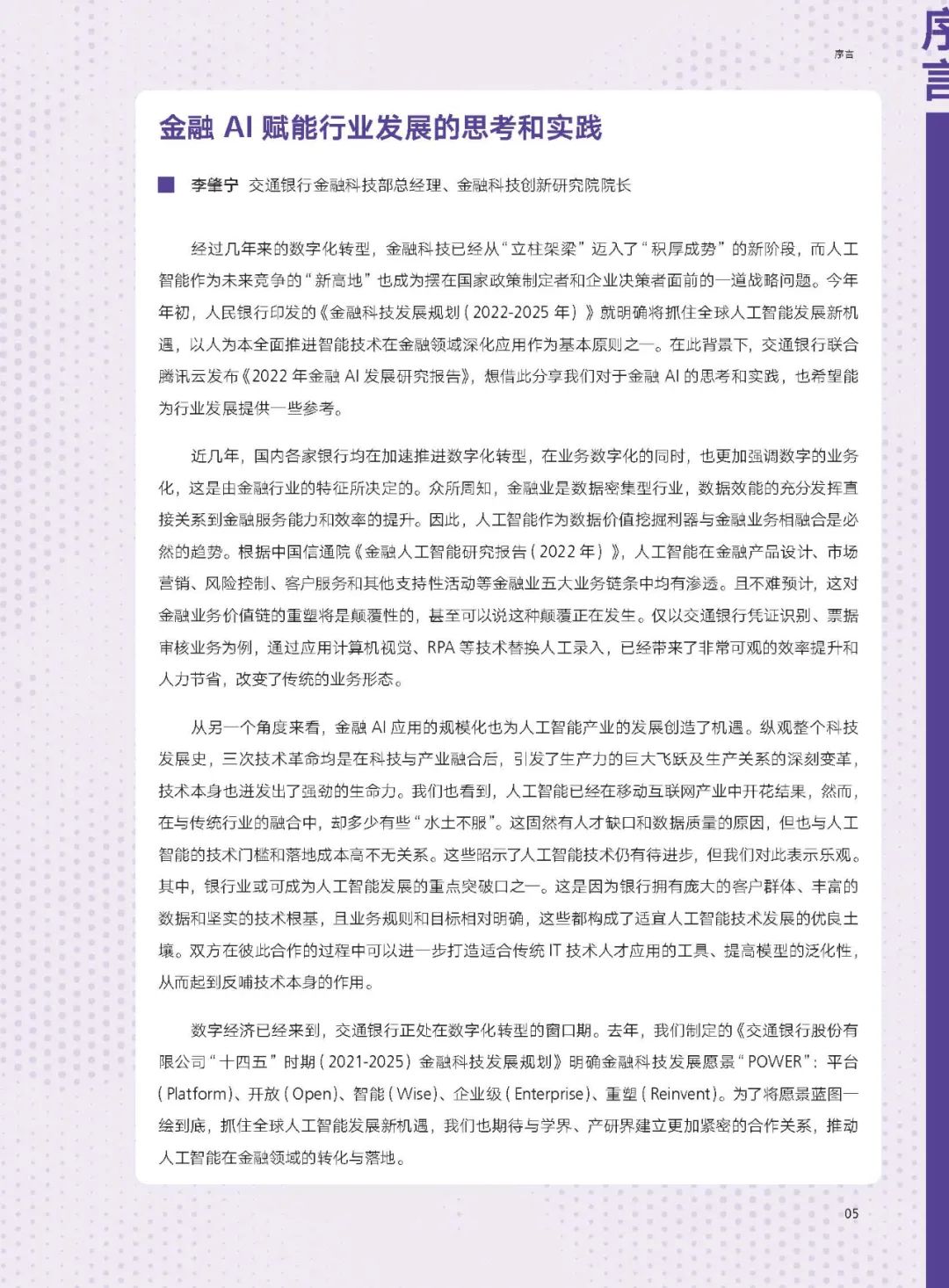 人工智能作为一种“新基建”,正在与实体经济深度融合,推动社会及各个产业的数字化转型、智能升级和融合创新。报告指出,近年来,人工智能技术正不断发展,并与金融业务深度融合,衍生出新业态、新场景,深刻影响金融业的发展模式,同时也为金融服务夯实“安全底座”。