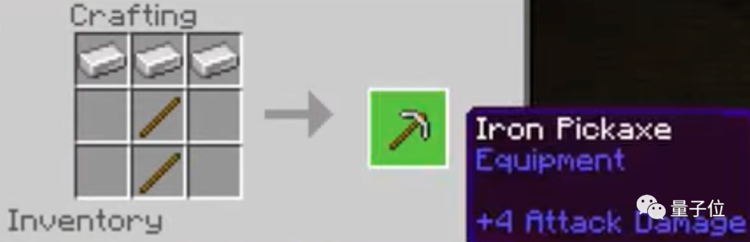 第六步,合成铁镐,用来挖出钻石: