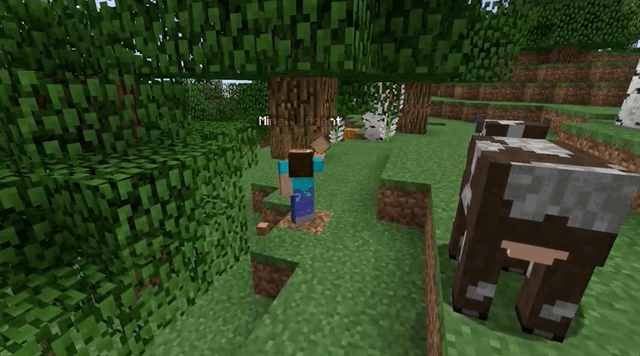 第一步,玩家在空手进入《我的世界》中时,需要先找到树上的木头,用来获取木块: