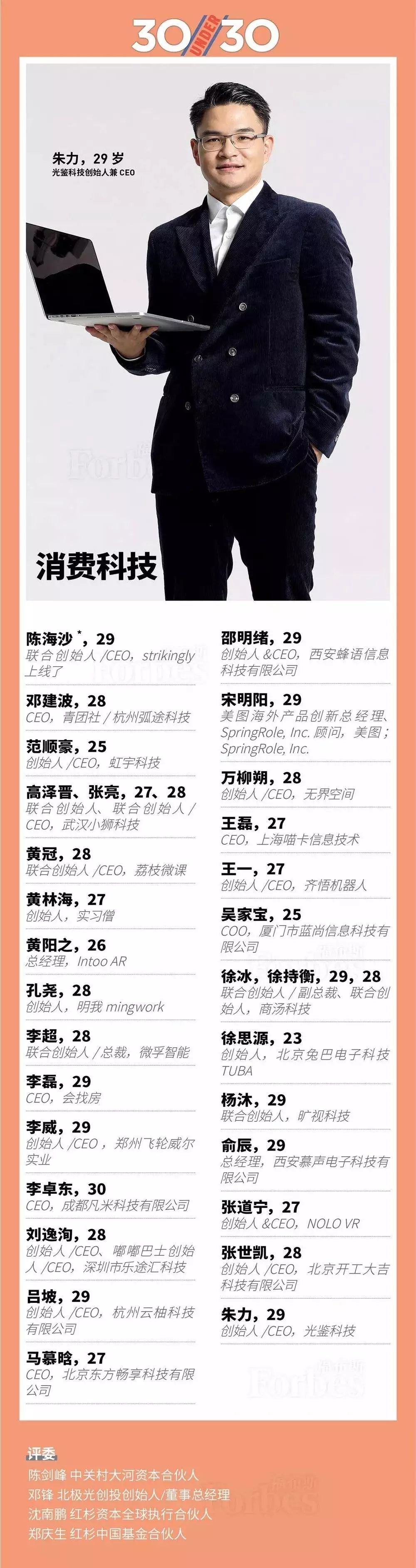 8月2日,福布斯中国公布了2018年中国“30位30岁以下精英”榜单。
