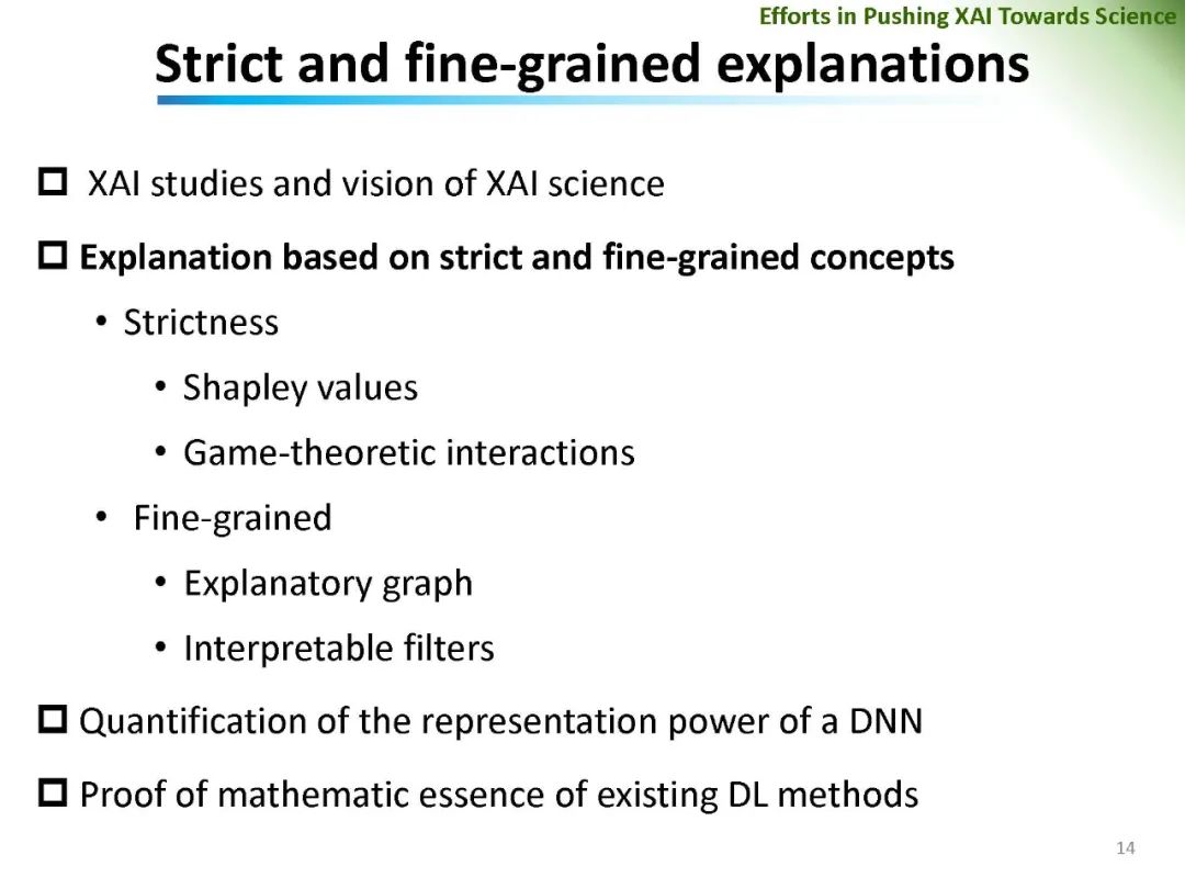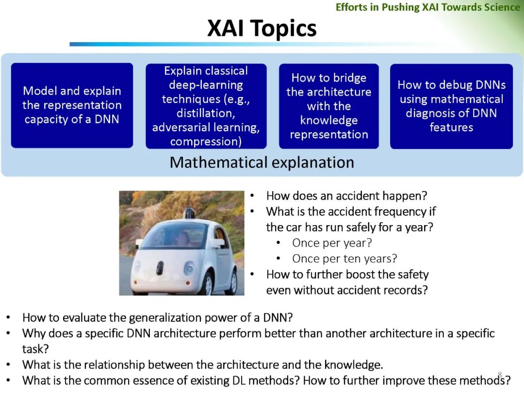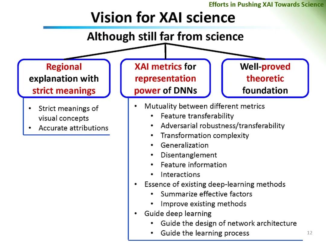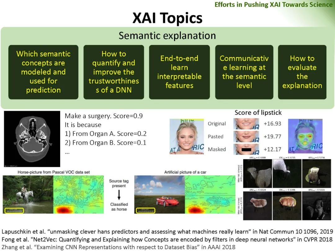 深度神经网络在计算机视觉、计算语言学和人工智能等领域的广泛应用无疑带来了巨大的成功。然而,DNNs成功的基本原理、DNNs的可信性和DNNs对抗攻击的恢复能力仍然很大程度上缺乏。在可解释人工智能的范围内,对网络预测解释可信度的量化和DNN特征可信度的分析成为一个引人注目但又有争议的话题。相关问题包括: (1)网络特征可信度的量化; (2)DNNs解释的客观性、鲁棒性、语义严谨性; (3)可解释神经网络解释性的语义严谨性等。重新思考现有可解释机器学习方法的可信性和公平性,对可解释机器学习的进一步发展具有重要的价值。