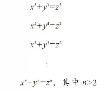 此外,当费马进一步提高x、y 和 z 的幂次时,他的求解努力一次又一次地碰壁。他开始觉得下列方程没有整数解: