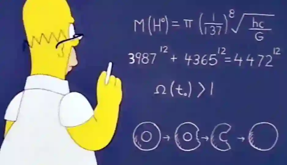 如果您关注【遇见数学】的《哈哈,这些关于数学的幽默》系列,每天会见到下面这幅题图,动画片《辛普森一家》中男主角荷马在黑板上恶搞写下的 4 个公式,其中第二个是最有趣的内容,你可以用计算器亲自进行检验是否违反来费马大定理。《数学大爆炸》书中对此进行了详细的解释,我们来一起来欣赏这点趣味数学。