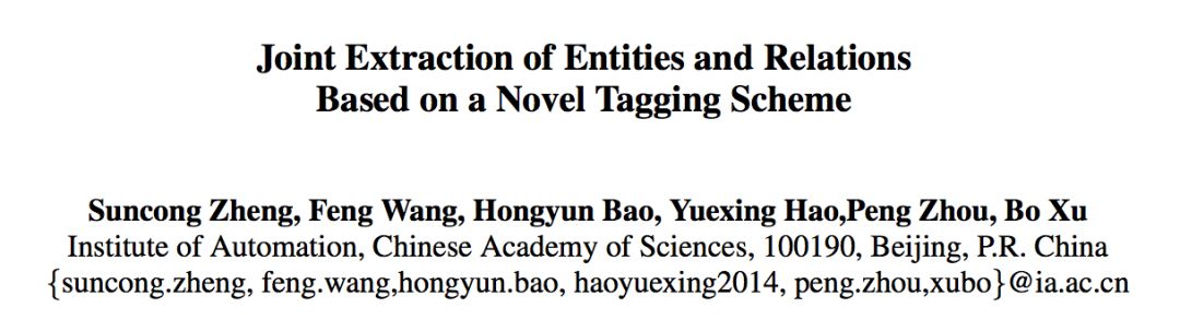 ■ 论文 | Joint Extraction of Entities and Relations Based on a Novel Tagging Scheme