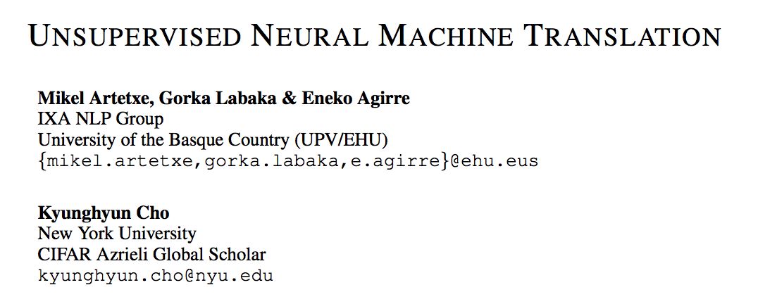 本文作者认为无监督神经机器翻译是大势所趋,完全舍弃了平行数据,提出了用完全无监督的方式训练神经机器翻译系统的新方法,该方法只需使用单语语料库。在统一的向量空间上进行“意译”,使用 denosing 和 backtranslation 来强化这一目标。