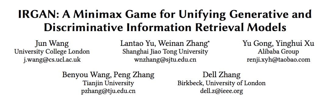 ■ 论文 | IRGAN: A Minimax Game for Unifying Generative and Discriminative Information Retrieval Models