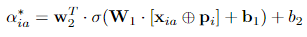 注意力分数即为用户特征和包含观点信息的商品特征进行拼接后,经过两层神经网络得到的值。
