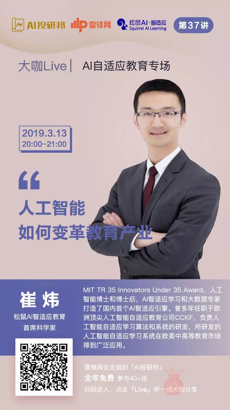 主讲者:松鼠AI智适应教育首席科学家崔炜