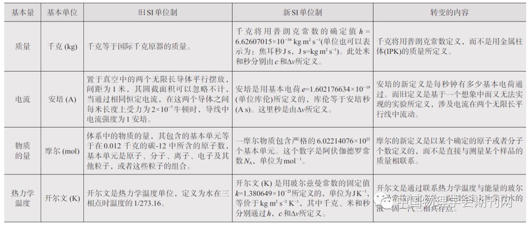 表1 新—旧SI 单位制中基本量的定义对照表