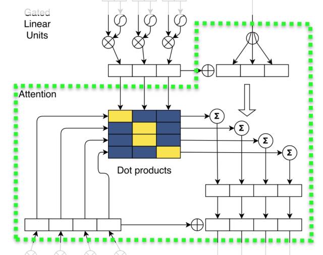 这个设计让人联想到LSTM中的门结构。GLU从某种程度上说,是在模仿LSTM和GRU中的门结构,使网络有能力控制信息流的传递,GLU在language modeling被证明是非常有效的[10]。