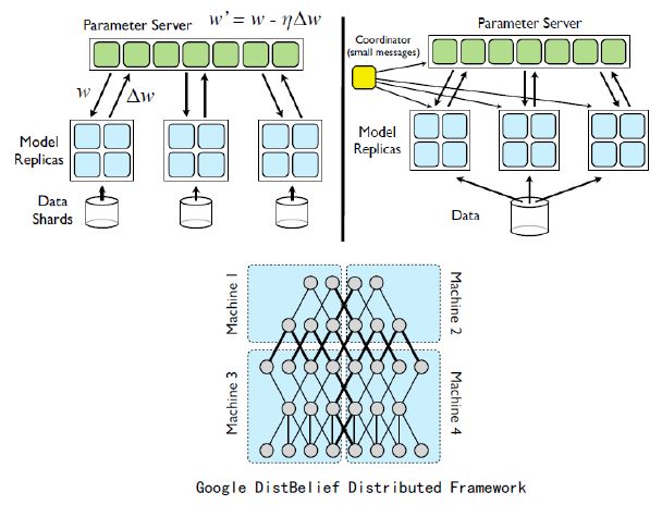 深度神经网络训练时间长,需要并行计算加速。主要方法有多机共享存储、同步随机梯度下降和异步随机梯度下降。