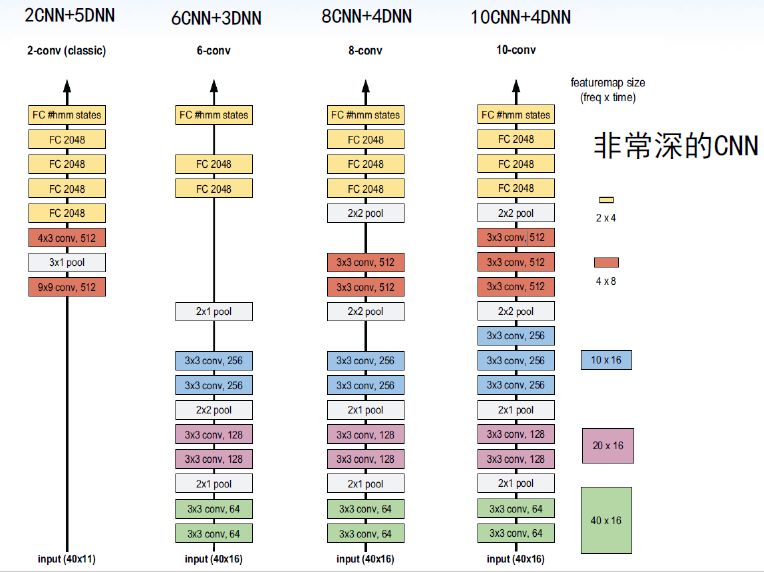 深度卷积神经网络-隐马尔科夫模型(CNN-HMM):卷积神经网络CNN把视觉空间信息逐层抽象化,在视觉处理中起了很大作用,下面讨论CNN为何能应用到语音处理。语音的时序状态的波形可以转化为频谱,语音和语谱图可以一一对应,即能从图像上“看懂”语音。尽管每个人之间说话具有差异性,有不同的口音,但从语谱图上能够反映相似性,所以引入CNN成为可行的方式。