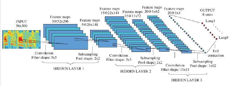 普遍认为将语音频谱变化为类似图像的方式的语谱图,采用CNN方法能得到最好的语种识别结果。