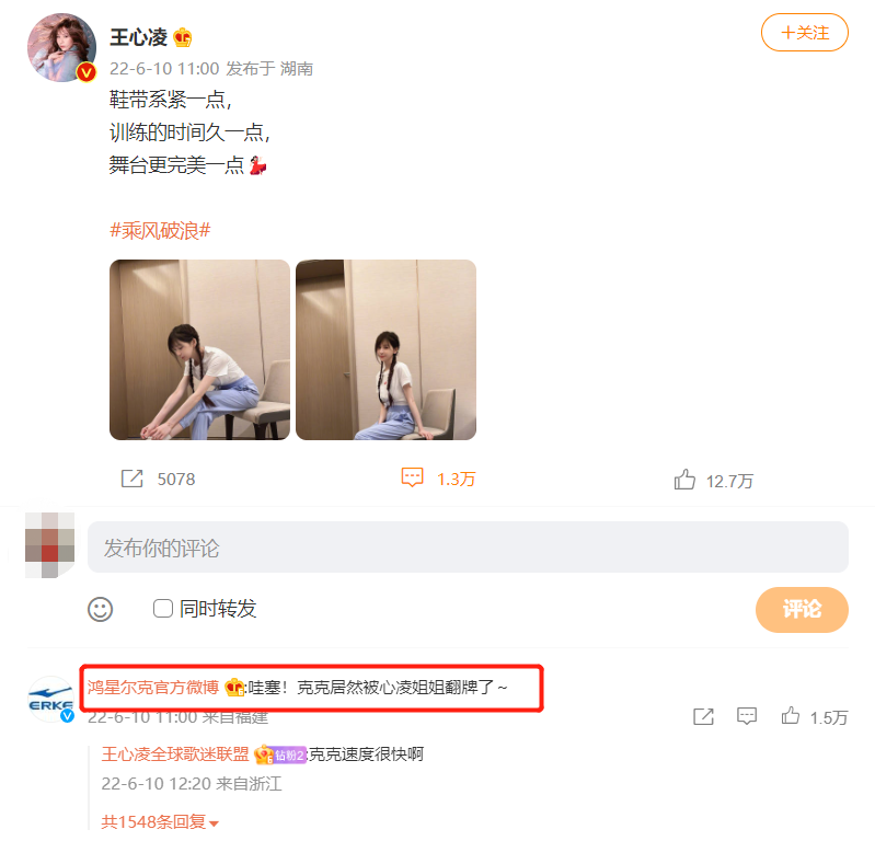 王心凌曾在今年6月晒出穿着鸿星尔克鞋子的两张照片,不少人表示产品“真好看”,再次掀起了一波“野性消费”的浪潮,这一次,网友的评论里少了些“情怀”,多了对产品的认可。