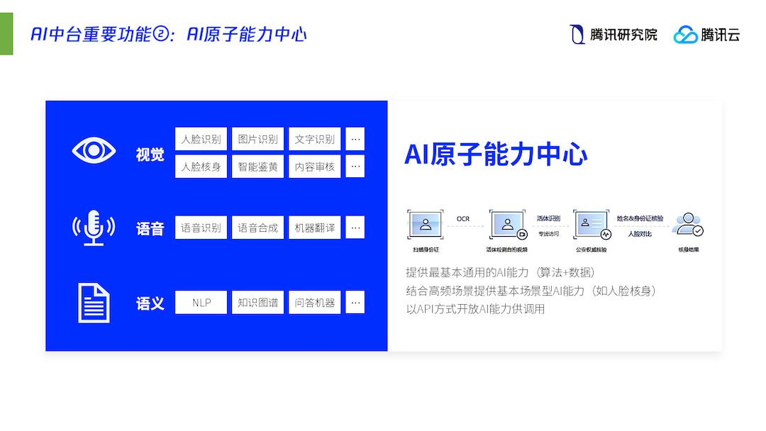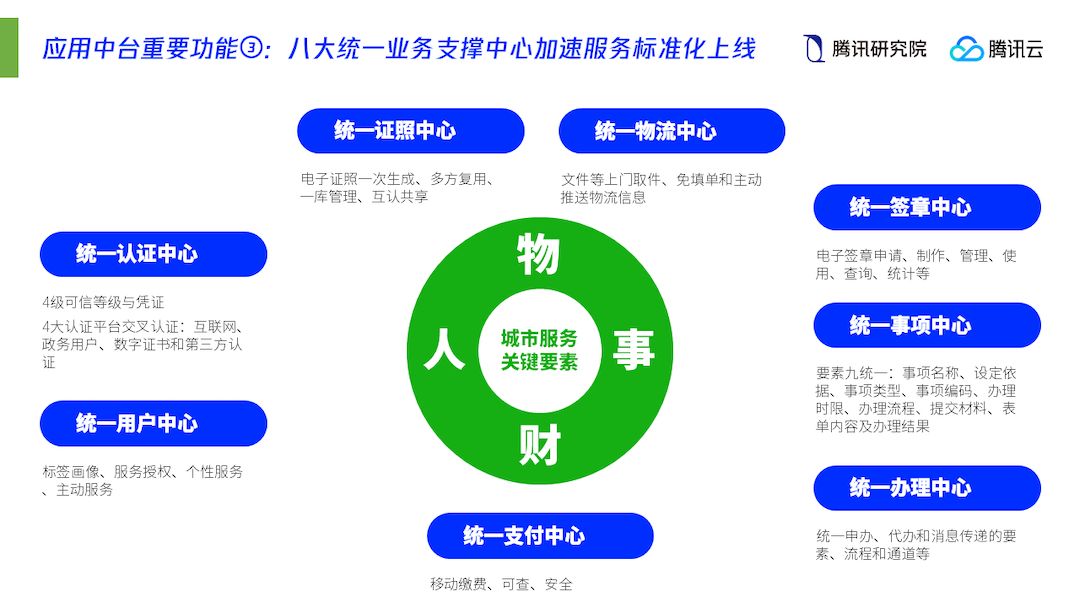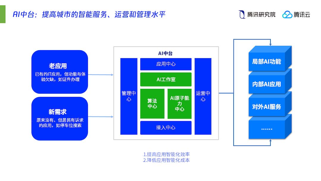 (2)模组化中台。在共享技术、数据、接口和标准的前提下,既有AI中台,也有应用中台、数据中台,共同为社会输出敏捷服务,激发各色应用或服务百花齐放;