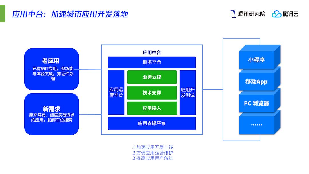 首先是从「 巨系统」到「 微服务」的价值转移。传统研究观点一直在强调智慧城市是「 复杂巨系统」,传统智慧城市建设思维也以建设大系统为价值指引,新的智慧城市则跳出了「巨系统」的思维框架,强调以「 海量微服务+综合移动入口」的微服务集群为主要特征,打造以数字技术为基因的城市「 微生态」。基于这一理念,越来越多的线下服务需要依照人的使用习惯和个性化需求重新设计,并通过独立APP、城市服务、小程序等多元的微端工具,快速触达到城市的每个场景、每个角落和每个人。