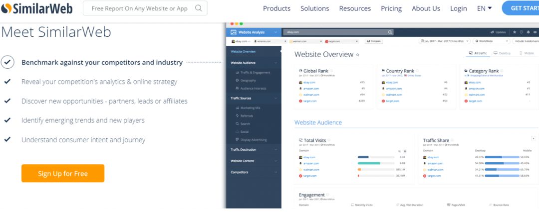 总之,SimilarWeb 是一个很好的工具,因为它可以帮助你跟踪你的整体业务健康状况,跟踪机会并做出有效的业务决策。