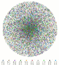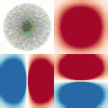 在我们的论文中,我们提出了解决上述问题的方法,通过利用在WebGL上生成的纹理计算目标函数的梯度近似值。我们的技术利用一个三通道的图案在每次最小化迭代时都绘制一个“排斥域(repulsive field)”,其中的三个组成元素作为RGB通道中的颜色和形状。每个点都会得到一个排斥域,用来表示点上水平和竖直方向的排斥力,第三个元素用作归一化。归一化要保证转换过程中的量值对应高维空间的相似度测量方法。除此之外,图案的分辨率也会根据不同情况调整,以保证像素的数量是不变的。