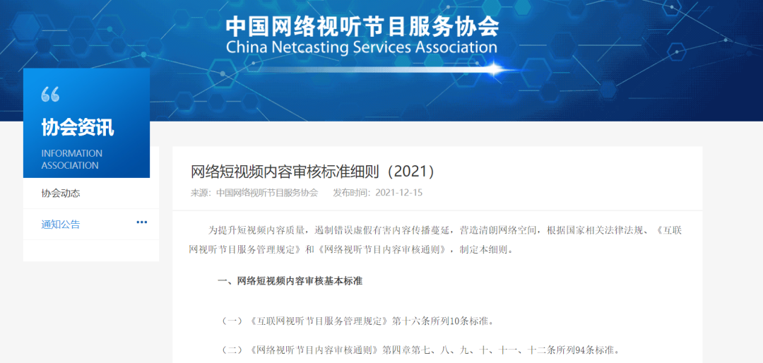 为了进一步提升内容质量和遏制错误虚假内容的传播。12月15日,中国网络视听节目服务协会发布了《网络短视频内容审核标准细则》(2021),其中第93条规定:短视频不得未经授权自行剪辑、改编电影电视剧。