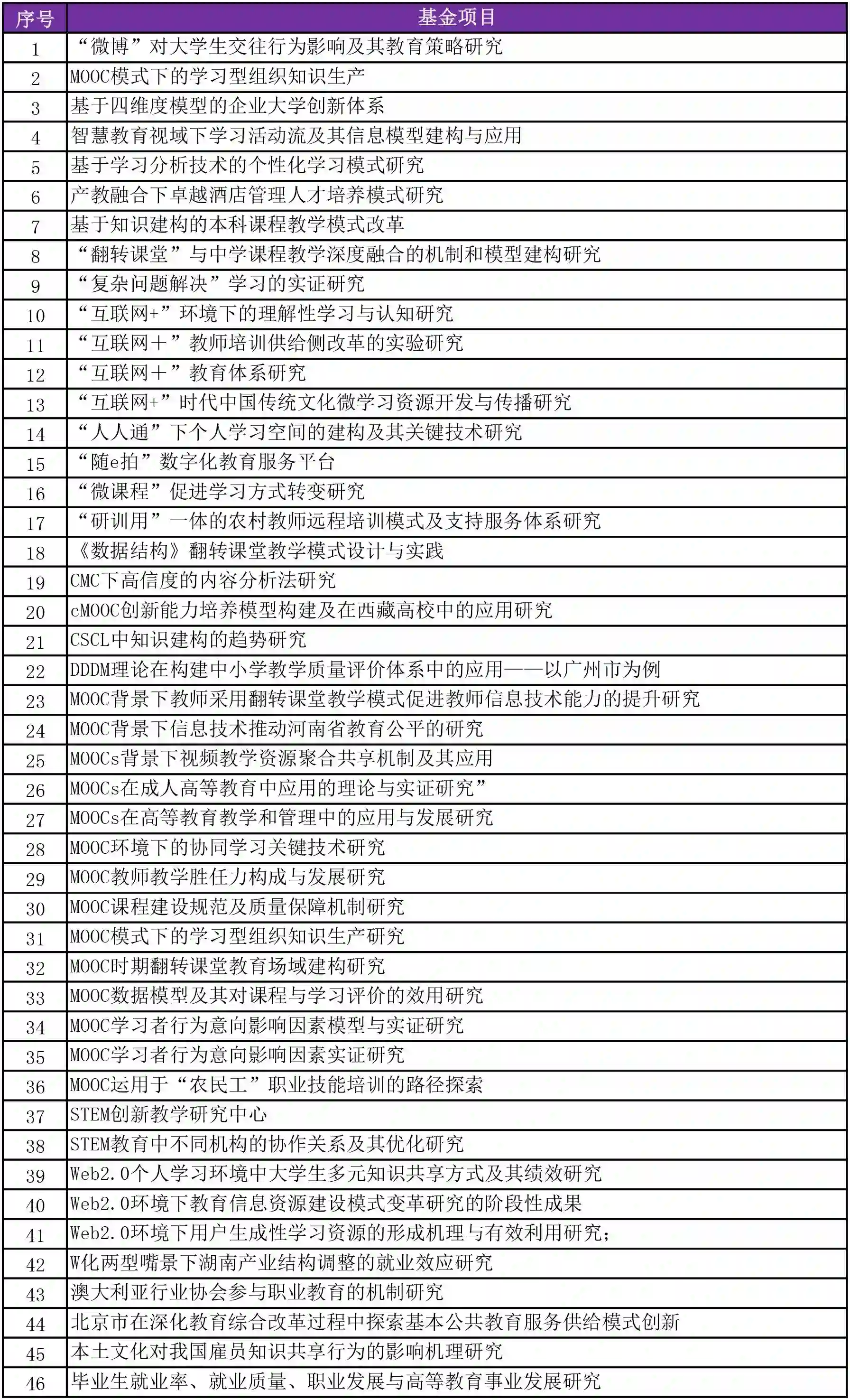 2015-2017年MOOC公号发布核心期刊基金项目一览表: