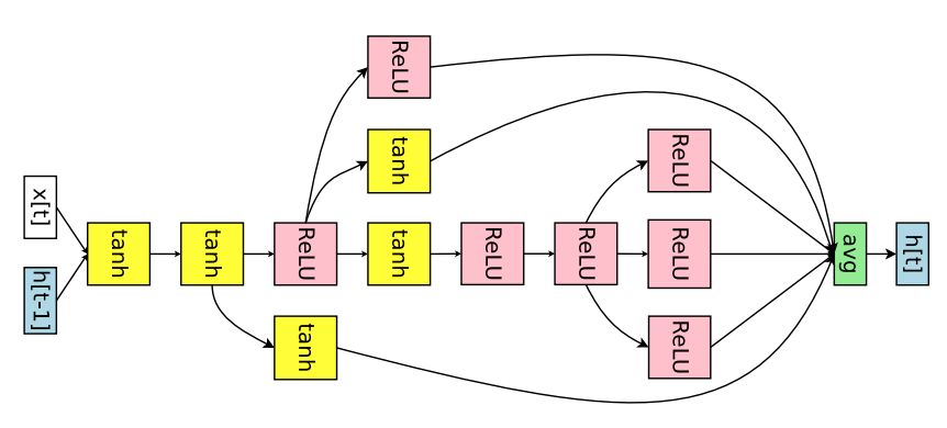 图 6:ENAS 为 Penn Treebank 数据集发现的 RNN 单元。