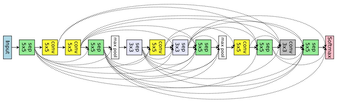 图 7:ENAS 从大型搜索空间中发现的用于图像分类的网络架构。