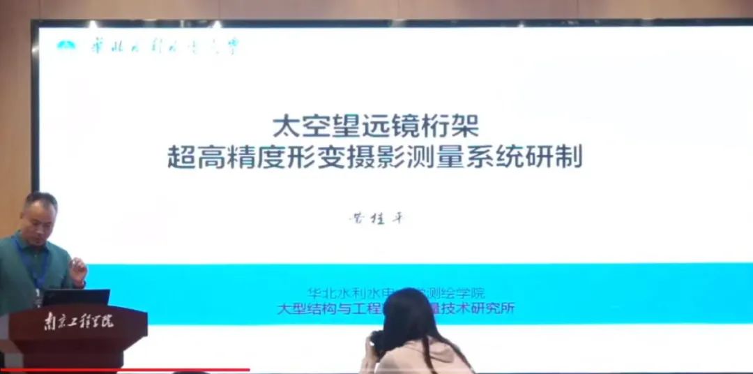 学黄桂平教授的报告题目“太空望远镜桁架超高精度形变摄影测量系统研制”,主要阐述了国产太空望远镜桁架形变测量需求与项目背景、超高精度形变摄影测量系统研制方案、测量网形设计与试验以及工程应用与测试等方面的研究。