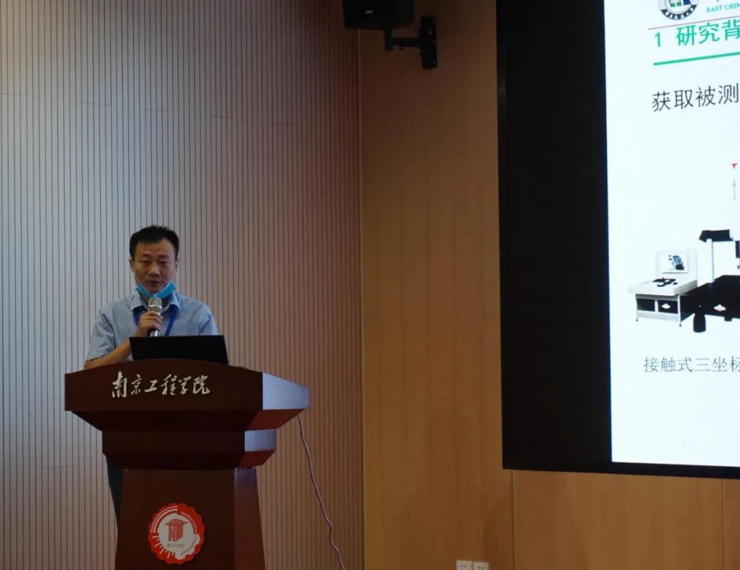 在研究生报告环节,9名优秀研究生分别做出了精彩的线上和线下报告。来自南京理工大学的朱文彬博士研究生,线下做了题为“基于图像拓扑分析的立体视差图道路目标检测”的报告;来自合肥工业大学的硕士研究生胡寅和李晨同学,由于疫情原因分别线上做了题为“散斑干涉相位图像滤波去噪算法研究”和“微视场散斑干涉复用测量系统”的报告;来自郑州轻工业大学的硕士研究生王瑞和杨犇同学,线下做了题为“棉花加工异性纤维智能识别分类检测技术的研究”和“复杂环境下基于新型线结构光标定的精密测量研究”的报告;来自深圳大学的硕士研究生朱文轩同学,线下做了题为“多毛刺高光谱数据下鹰嘴蜜桃含水率的估计方法”的报告;来自河海大学的博士研究生申旭同学,线下做了题为“超高精度形变摄影测量网形设计理论研究与应用”的报告;来自安徽工业大学的硕士研究生刘林和陆凡凡同学分别线下做了题为“超高精度形变摄影测量网形设计理论研究与应用”和“基于改进EfficientNet网络的长尾夹缺陷检测”的报告。与会专家们在听取报告并提问后,对这9名硕士研究生的报告进行了排名,并由视觉检测专委会副主任委员刘国栋教授宣读了评选结果。