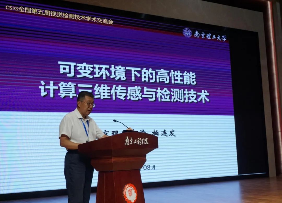 南京理工大学电子工程与光电技术学院院长柏连发教授的报告题目为“可变环境下的高性能计算三维传感与检测技术”,报告阐述了结构光投影计算三维重建理论,提出了“空间条纹相移”、“复杂环境误差补偿”等复合编码调制思路,并在相位测量领域引入深度学习机制,突破单帧投影高速高动态高精度三维重建,丰富了计算光学理论内涵,突破了复杂工况下的结构光三维测量综合性能,提升了工业数字化、智能化水平。