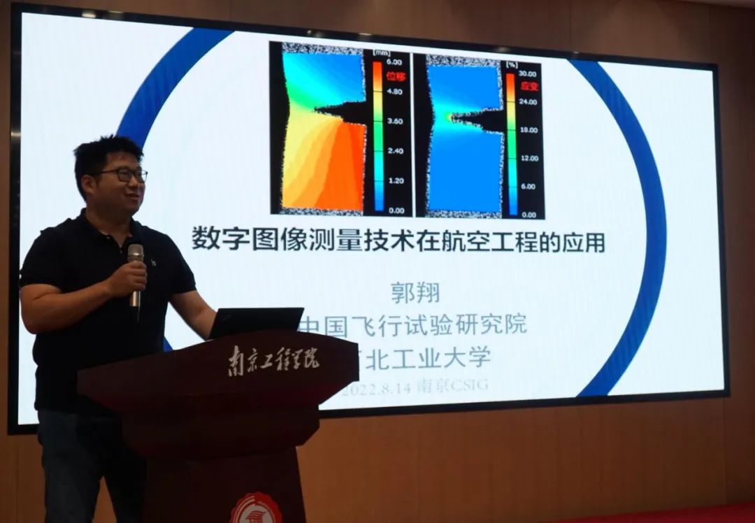 中国飞行试验研究院、西北工业大学郭翔副教授的报告题目“数字图像测量技术在航空工程的应用”,主要针对航空工程领域内的复杂变形过程中的测量问题展开研究,建立了数字图像复杂变形测量系统,实现了航空结构复杂变形测量中的噪声抑制、复杂结构飞行状态测量、复杂热力耦合变形过程力学性能测试,为研究航空材料/结构在复杂运动及变形过程中的运动评估及力学性能表征提供了新的测量手段。