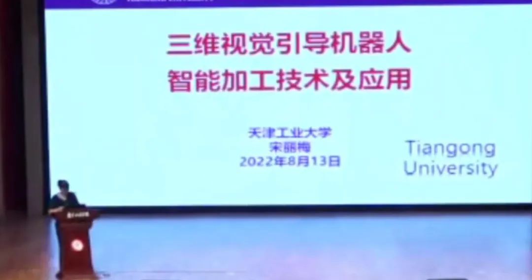 天津工业大学控制科学与工程学院常务副院长宋丽梅教授的报告题目为“三维视觉引导机器人智能加工技术及应用”,宋教授在报告中介绍了团队自主开发的单目、双目三维精密视觉检测系统在报废汽车拆解、鞋楦三维智能打磨、铸件打磨等行业的应用。课题组研制的三维视觉引导重载机械臂自动完成报废汽车的定位抓取工作,提高了抓取的准确性与工作效率。