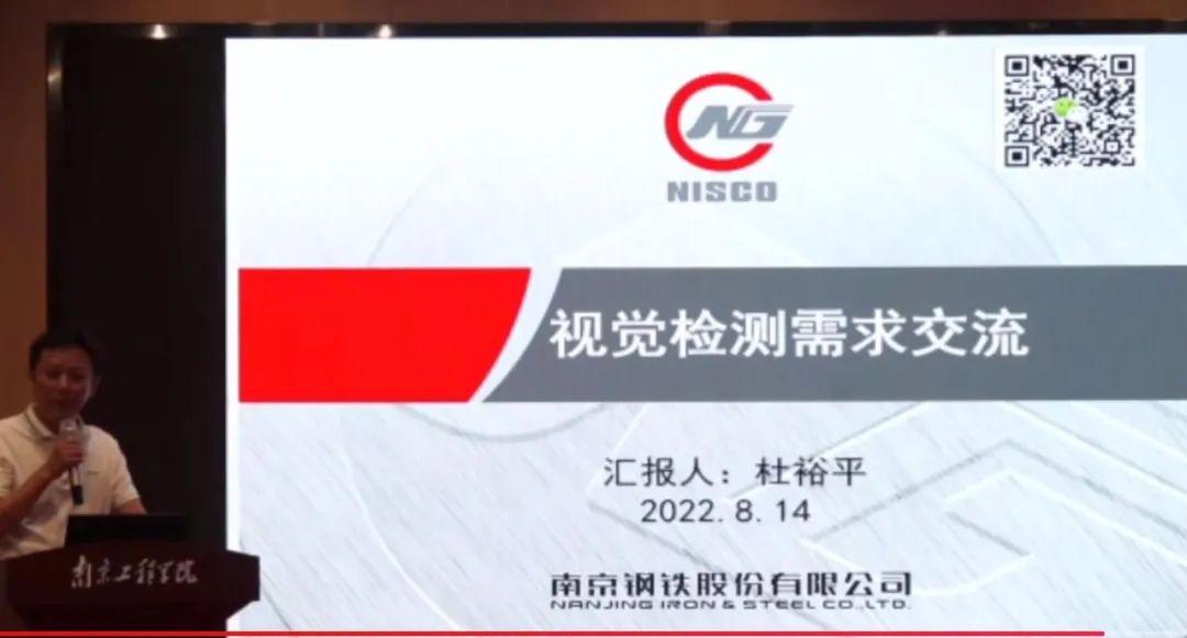 南京钢铁股份有限公司杜裕平经理针对公司在钢铁生产过程中的产品质量监控方面,提出了一些钢铁视觉检测需求,以期通过本次会议能和与会专家一起在自动化、智能化视觉检测研究方面合作,突破企业生产过程中的技术瓶颈。