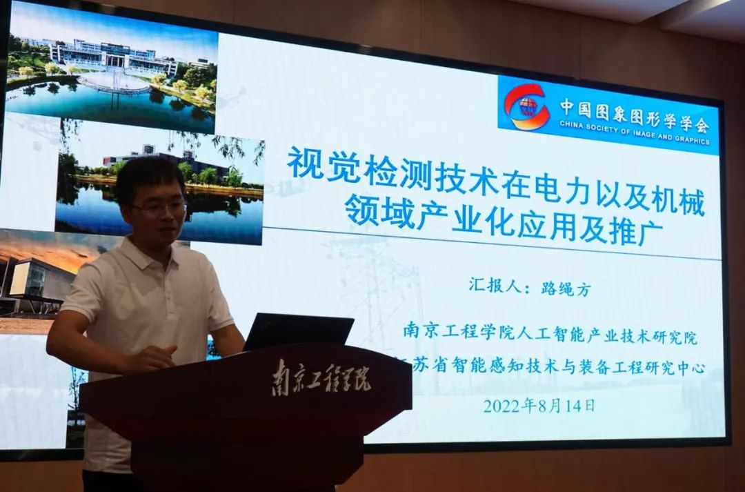 南京工程学院路绳方副教授的报告题目“视觉检测技术在电力以及机械领域产业化应用及推广”,从视觉检测技术以及在电力行业、机械行业等背景下的应用为出发点,介绍了研究团队应用视觉检测技术在特色行业领域的产业化及应用情况。