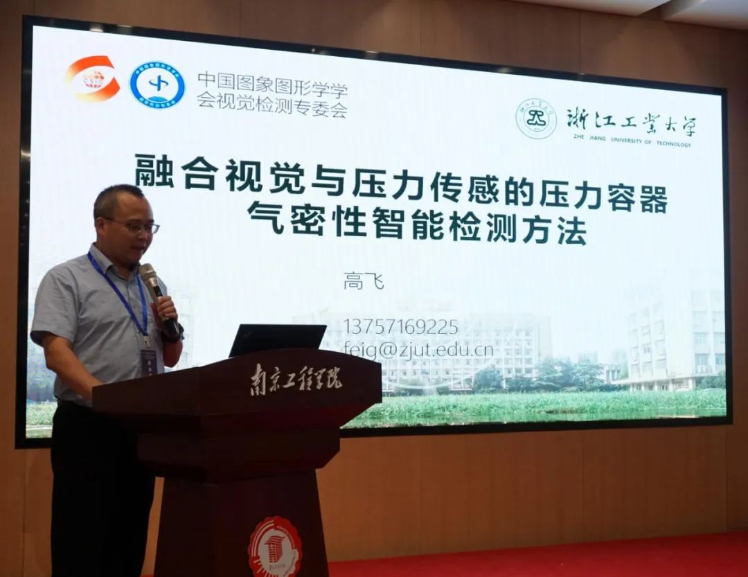 浙江工业大学图形图像研究所所长高飞教授的报告“融合视觉与压力传感的压力容器气密性智能检测方法”,高教授针对当前压力容器气密性试验存在少检、漏检、试验压力不达标、保压时间不足等及现有研究的不足,展开了压力容器气密性试验智能检测方法研究。