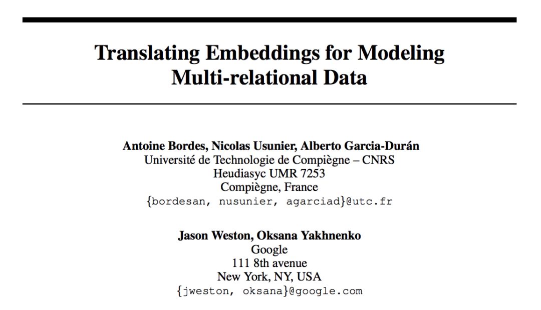 ■ 论文 | Translating Embeddings for Modeling Multi-relational Data