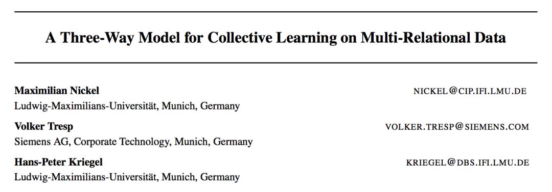 ■ 论文 | A Three-Way Model for Collective Learning on Multi-Relational Data