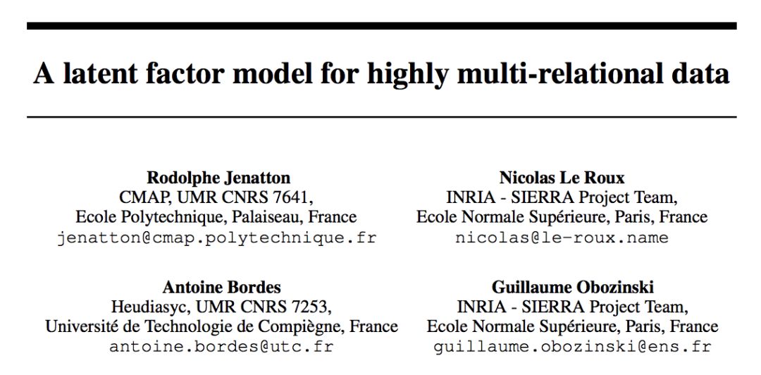 ■ 论文 | A Latent Factor Model for Highly Multi-relational Data