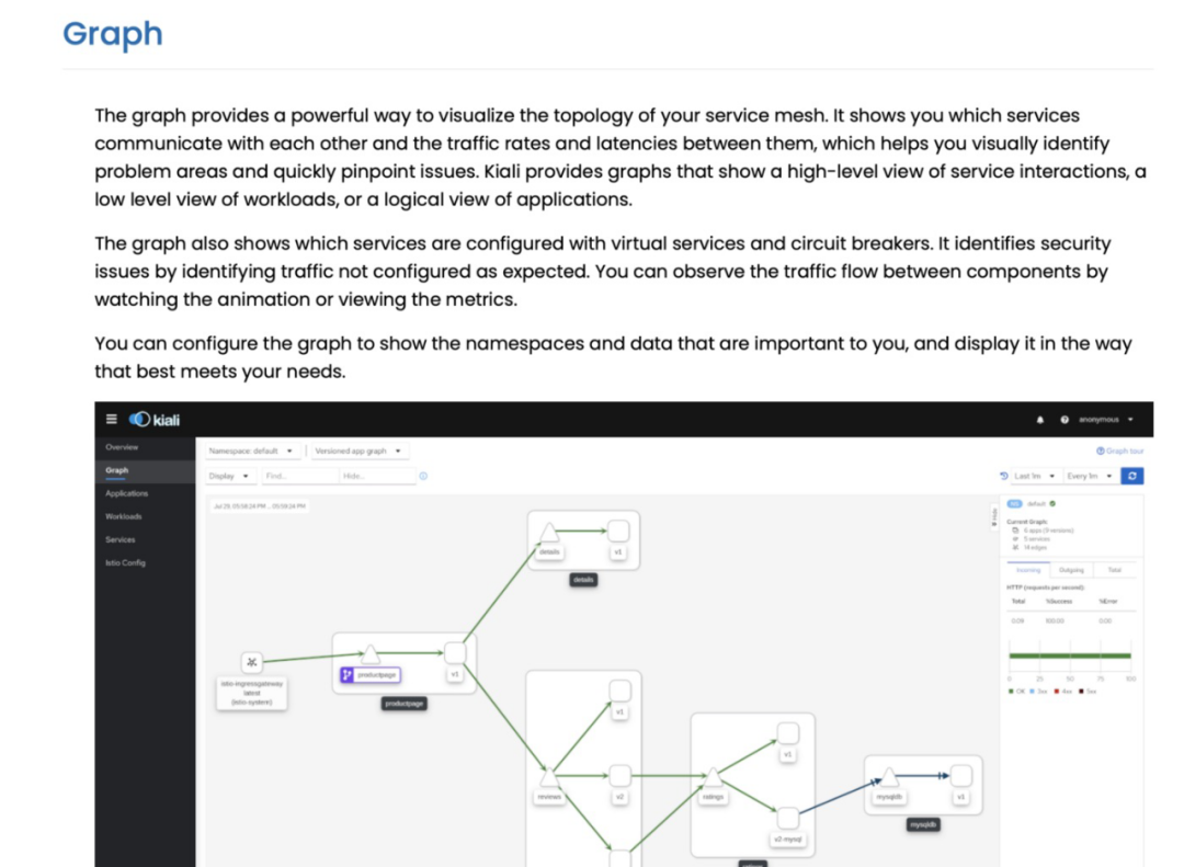 有很多策略或建议可供使用来保持文档最新,但是最近我发现自己正在构建 Tiny 代码(非常感谢 GitHub API),它从代码本身提取信息来收集真相,或者依赖 Kiali 等工具的报告来实现流量与应用之间协作的可视化。