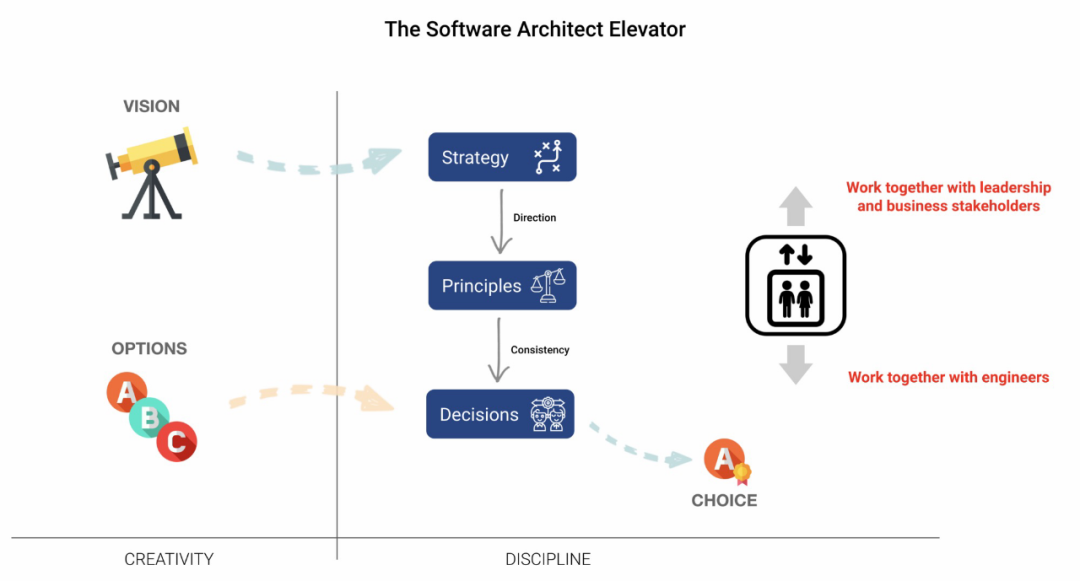 这类角色的复杂性的确是因组织而异,于我而言,我认为应该首先确定什么是软件架构师,以避免产生混淆。为此,我们主要依靠 The Software Architect Elevator(暂无中译本,本文暂译为《软件架构师电梯》)一书作者 Gregor Hohpe 提出的概念。