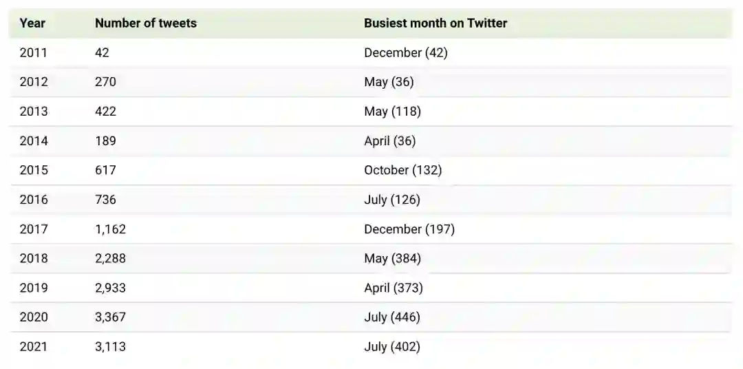 而之所以如此,数据分析网站认为是因为马斯克在推特上发表过众多热点话题。