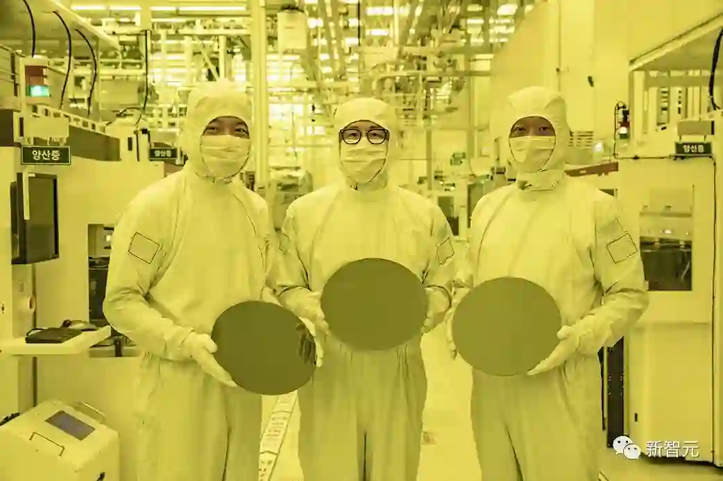 中间三位大咖抱的可不是普通的「盘子」,而是刚从三星华城电子园区生产线上拿下来的3纳米晶圆。