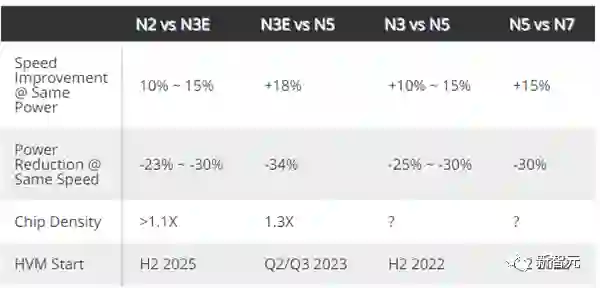 从表中也可以看出,台积电的2纳米制程的部分技术指标:相较于3纳米的低成本版工艺,在相同功耗下,台积电2纳米工艺的性能将提升10~15%;而在相同性能下,台积电2纳米工艺的功耗将降低23~30%;晶体管密度仅提升了10%。