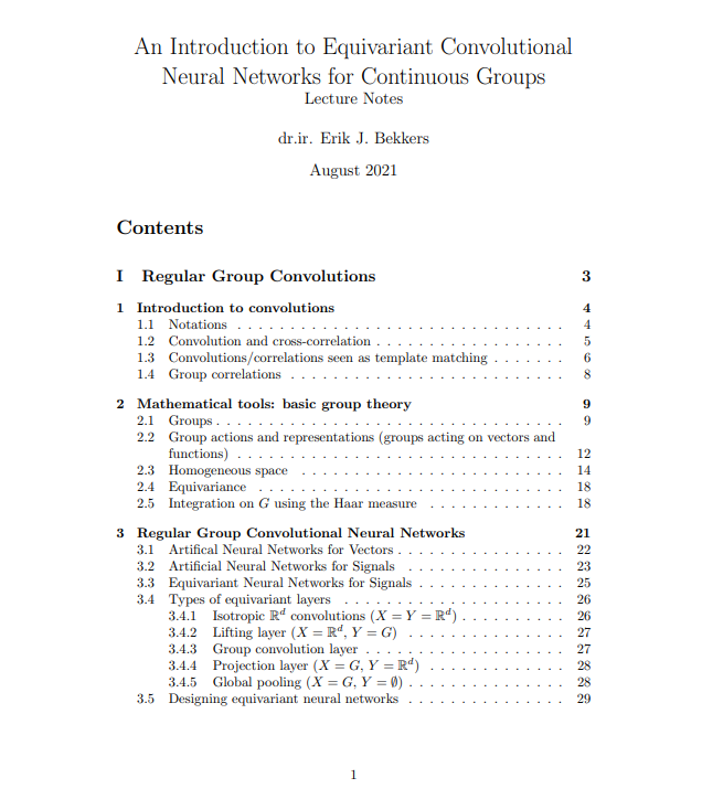 来自阿姆斯特丹大学Erik J Bekkers助理教授讲解的群等变深度学习课程。由于该课程目前还在进行中,所以偶尔提供的资料会有些错误,请见谅。在接下来的几个月里,我将定期更新它们。本课程最重要的材料是课堂讲稿。