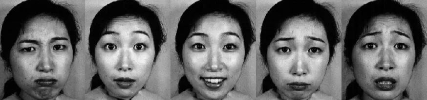The database contains 213 images of 7 facial expressions (6 basic facial expressions + 1 neutral) posed by 10 Japanese female models. Each image has been rated on 6 emotion adjectives by 60 Japanese subjects. The database was planned and assembled by Michael Lyons, Miyuki Kamachi, and Jiro Gyoba. We thank Reiko Kubota for her help as a research assistant. The photos were taken at the Psychology Department in Kyushu University.